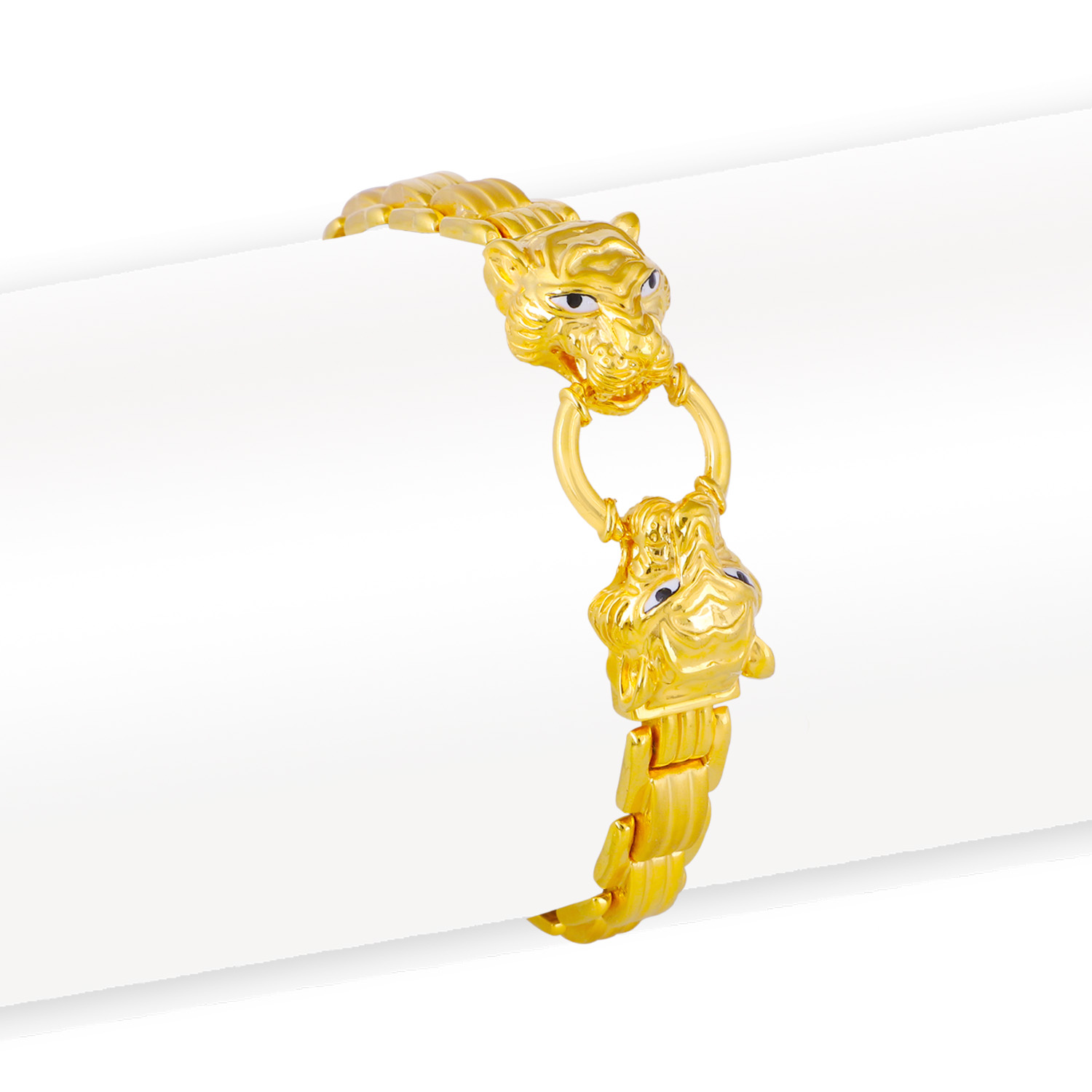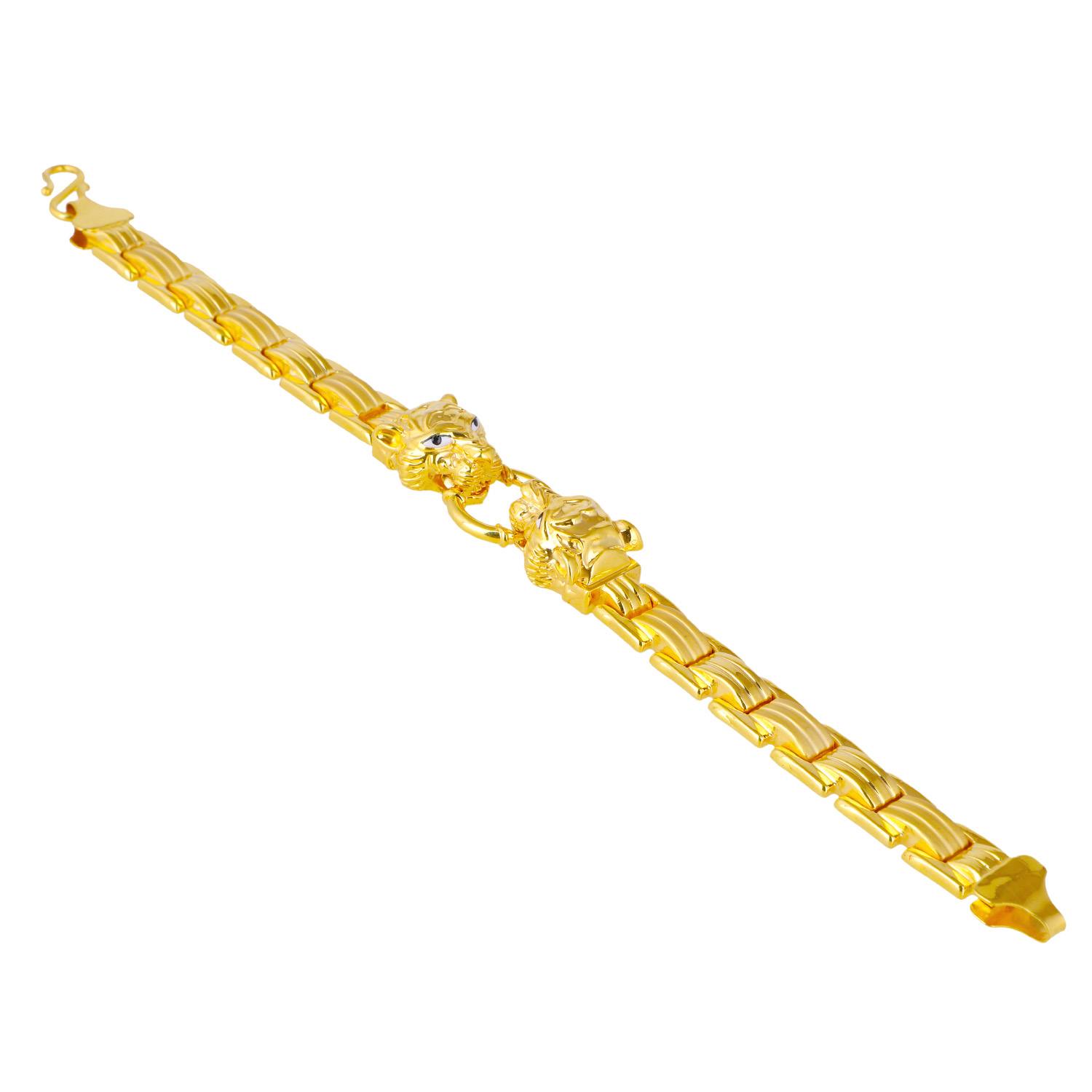 TWIN LION HEAD GOLD GENTS BRACELET IN 8 INCH