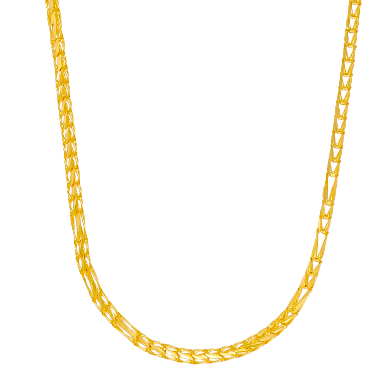 GOLD HANDMADE LONG FANCY CHAIN IN 24 INCH