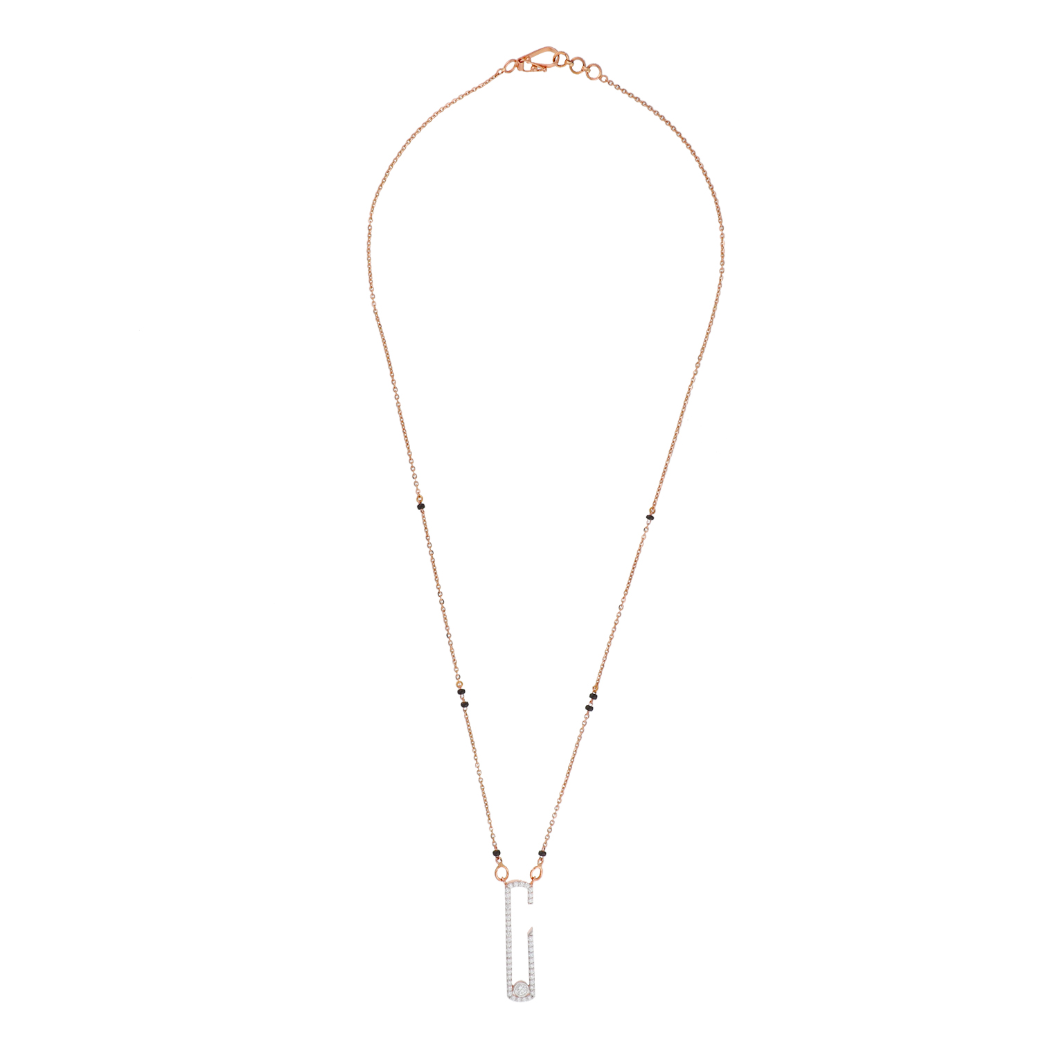 ROSE GOLD FANCY EXQUISITE DIAMOND MANGALSUTRA PENDANT WITH BLACK BEADS CHAIN AND EARRING
