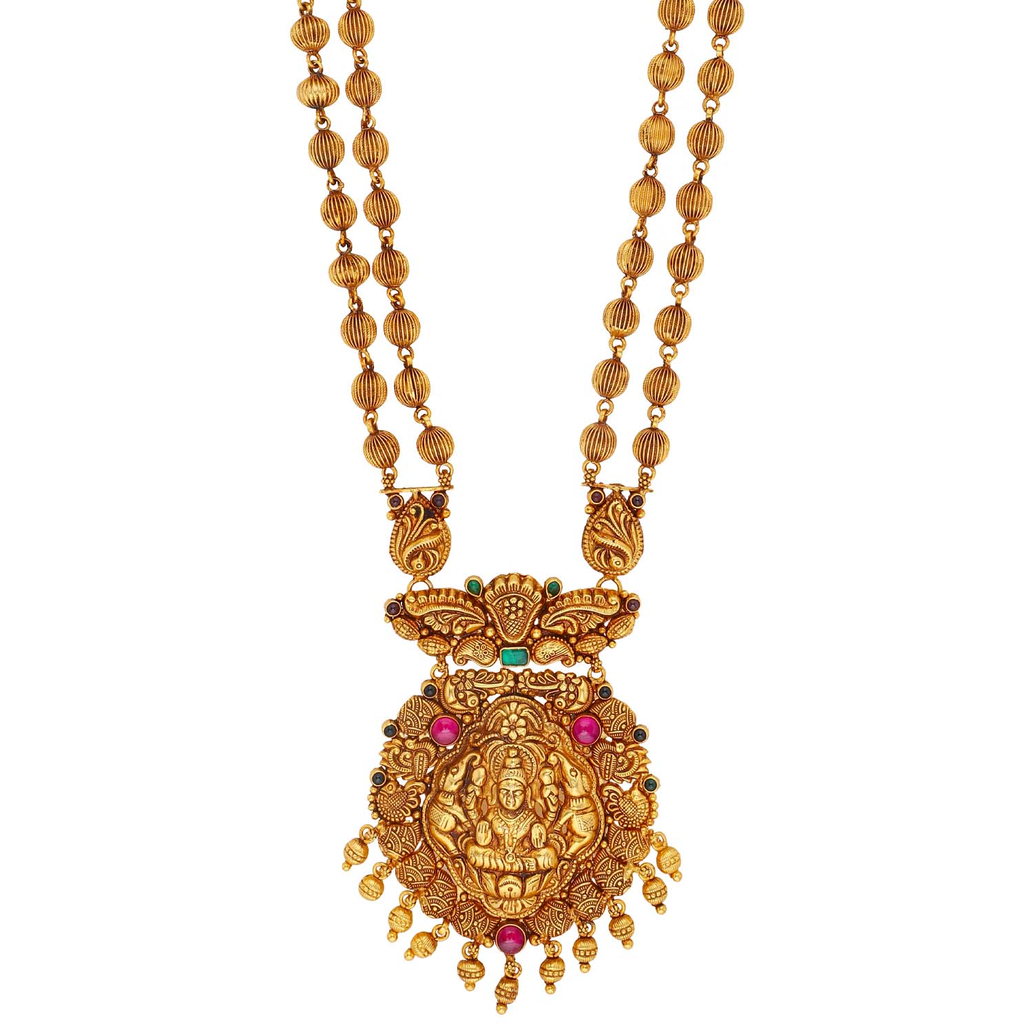 SILVER TRADITIONAL LONG NECKLACE WITH ELEGANT LAXMI PENDANT
